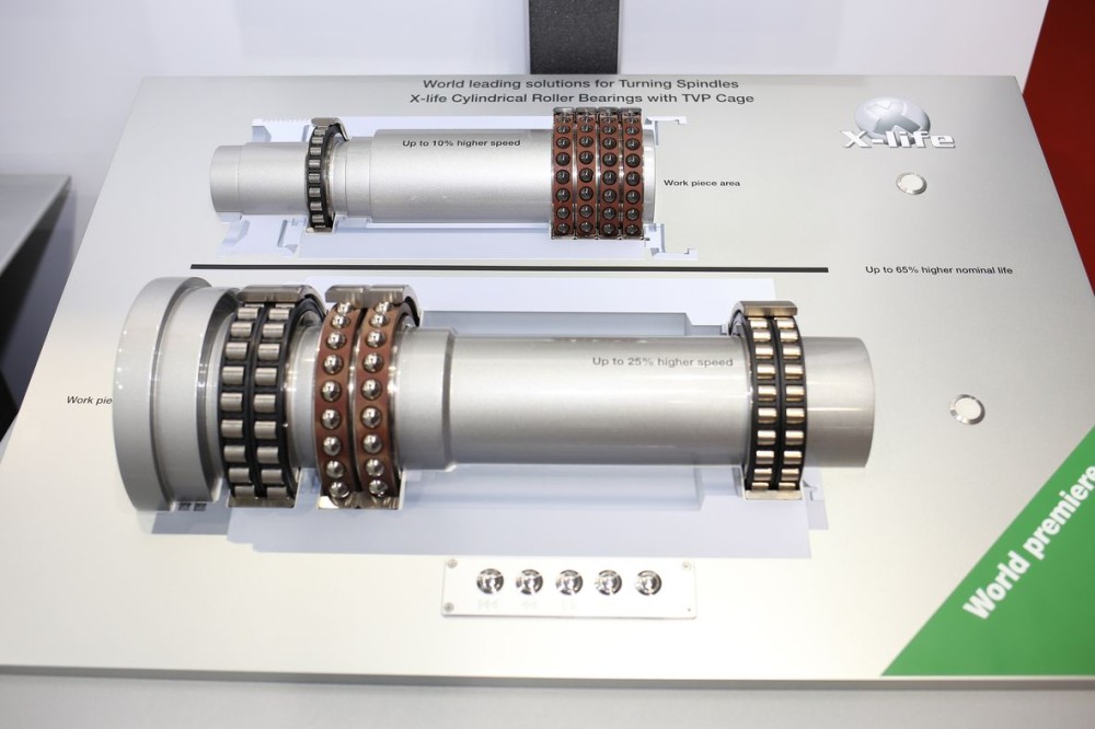 此次展會上,舍弗勒將展出全新的X-life(超長壽命)高品質(zhì)軸承系列:X-life高精度圓柱滾子軸承、X-life M系列高速主軸承、X-life六列直線循環(huán)滾珠軸承和導軌組件,以及新型帶值測量系統(tǒng)YRTC轉臺軸承。這些新型軸承具有較高的限速度、承載能力、剛度和使用壽命,將為新一代機床創(chuàng)造較大化的價值。